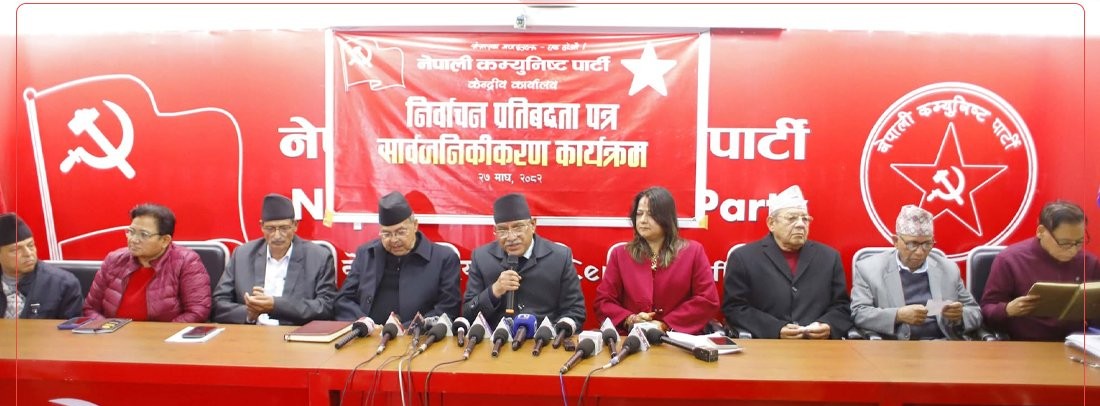 काठमाडौं । नेपालको पछिल्लो राजनीतिक समीकरणमा युवा पुस्ता (जेनजी) को बढ्दो प्रभावलाई आत्मसाथ गर्दै नेपाल कम्युनिस्ट पार्टीले आफ्नो चुनावी प्रतिबद्धतापत्र सार्वजनिक गरेको छ । मंगलबार सार्वजनिक गरिएको ४५ पृष्ठ लामो उक्त दस्तावेजमा शासकीय सुधार, सुशासन र रोजगारीलाई मुख्य प्राथमिकतामा राखिनुले सडकमा सुनिएको युवाहरूको आवाजले राजनीतिक दलहरूलाई दबाबमा पारेको प्रष्ट देखिन्छ।